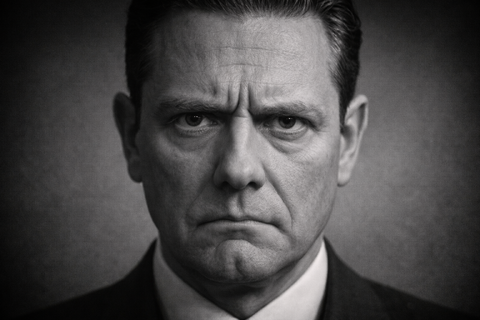 He’s serious in the way a clipboard is serious, and cheeky in the way a man can be when he knows you can’t complain to anyone who matters.