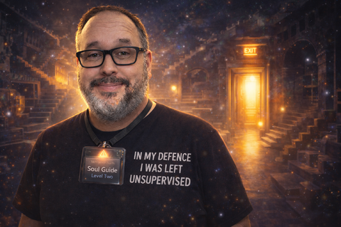 David Alan King is the sort of Soul Guide who arrives with the correct lanyard, the wrong paperwork, and an expression that suggests he intends to be helpful regardless of what Management thinks “helpful” means. Officially, he is a Level Two, which indicates modest authority and minimal responsibility. In practice, it means he has just enough clearance to escort you through certain doors, point at important things, and accidentally cause significant administrative distress while doing so. He speaks with the disarming warmth of someone offering directions, while gently steering you toward the realisation that you are no longer technically alive, and that the universe has been keeping notes. He is earnest, inconveniently perceptive, and prone to treating metaphysical revelations with the same tone one might use to explain a parking fine. Most notably, he does not behave like a reassuring adult. This is not a flaw, it is a consistent policy choice. If you are looking for a calm, fully qualified guide with a laminated handbook and a sensible plan, you will be disappointed. If you are looking for the truth, a door, and someone willing to ignore protocol long enough to get you through it, then unfortunately, he may be exactly what you’ve been given.