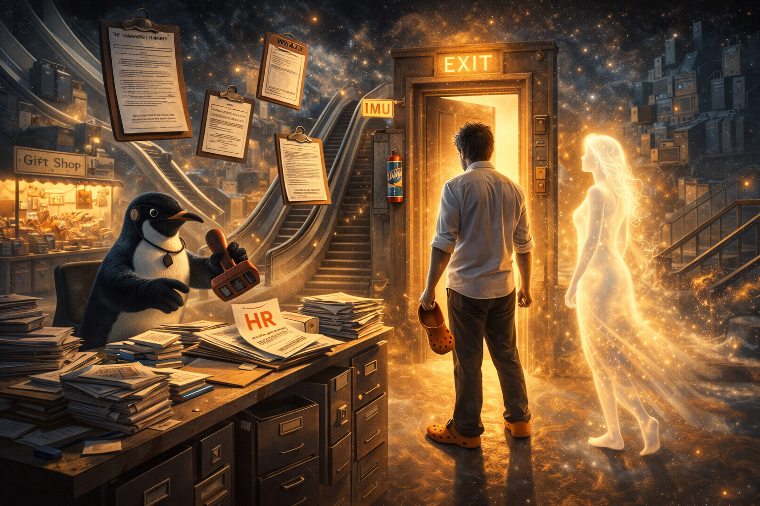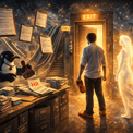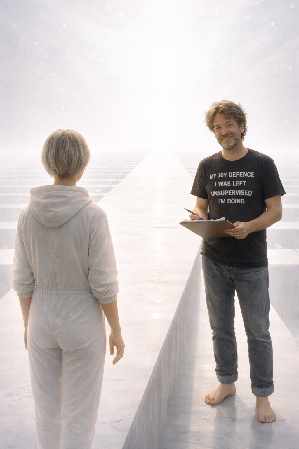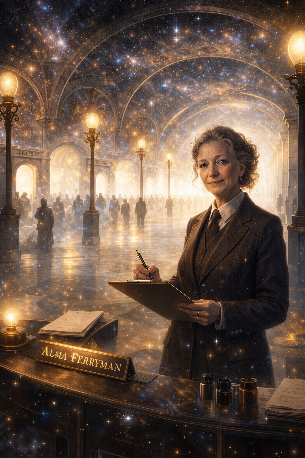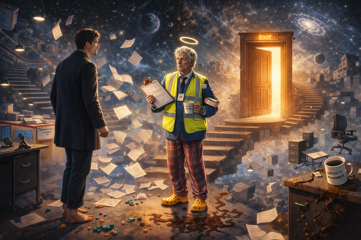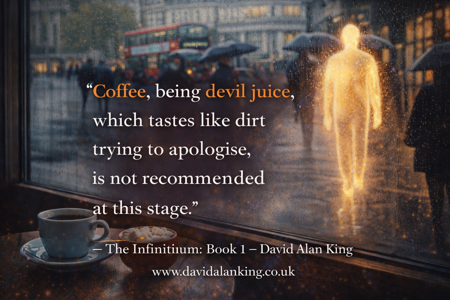 These images are here to give you a feel for the universe I’ve created, the tone of it, the places, the odd little corners where reality creaks, and the bits where The Management would very much prefer you didn’t look too closely.